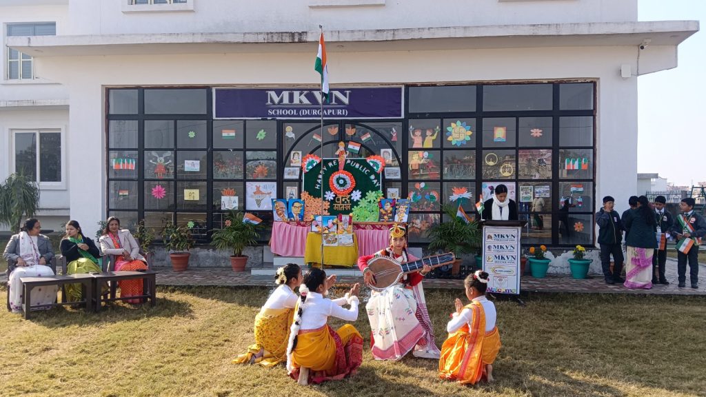 इसी क्रम में एमकेवीएन स्कूल दुर्गापुरी में विद्यालय की शिक्षा निदेशिका श्रीमती सिन्धु कोठारी जी द्वारा बच्चों को अपने अंदर छुपी हुई कमी और मजबूती को समझते हुए अपने लक्ष्य को प्राप्त करने के विषय में बताया गया। कक्षा-03 की आन्या, अवनी व कनिका द्वारा प्रस्तुत देशभक्ति गीतों पर प्रस्तुति ने सभी को देशप्रेम से ओत-प्रोत कर दिया। कक्षा-06 के सोमेश बड़थ्वाल ने हिन्दी में भाषण प्रस्तुत किया वहीं कक्षा-04 के अक्षित रावत ने अंग्रेजी में गणतंत्र दिवस के महत्व को सभी छात्र-छात्रों के साथ साझा किया। विद्यालय की शिक्षिका श्रीमती रंजना जी द्वारा गणतंत्र दिवस के उपलक्ष में एक भाषण प्रस्तुत किया गया, जिसमें उन्होंने संविधान के निर्माण एवं उसके महत्व को विस्तार से सभी को बताया। मंच संचालन श्रीमती सुनीता कामबोज द्वारा किया गया।