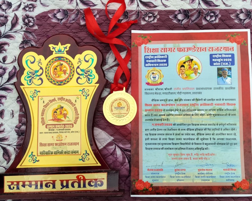 कोटा राजस्थान में उत्तराखंड के शिक्षकों को राष्ट्रीय क्रांतिकारी नवाचारी शिक्षक सम्मान-2026 से नवाजा गया.