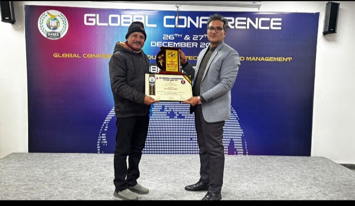 राजकीय महाविद्यालय कण्वघाटी कोटद्वार में वाणिज्य संकाय में असिस्टेंट प्रोफेसर के पद पर कार्यरत्त डॉ. अनुराग शर्मा जी को उच्च शिक्षा के क्षेत्र में उत्कृष्ट कार्य करने के लिए इंस्टीट्यूट ऑफ़ हॉस्पिटैलिटी मैनेजमेंट एंड साइंसेस IHMS कोटद्वार के प्राचार्य प्रो. अश्विनी शर्मा जी द्वारा सम्मानित किया गया। शिक्षा के क्षेत्र में अनुकरणीय कार्य करने वाले चयनित शिक्षाविद् को सम्मानित करने का कार्य इंस्टीट्यूट ऑफ हॉस्पिटैलिटी मैनेजमेंट एंड साइंसेस IHMS कोटद्वार के द्वारा किया जाता है। उच्च शिक्षा में वाणिज्य विषय में अनुकरणीय कार्य करने के लिए वर्ष 2025 के टीचर एक्सीलेंस अवार्ड हेतु डॉ. अनुराग शर्मा को चयनित किया गया तथा 31 दिसंबर 2025 को सम्मानित किया गया । डॉ. अनुराग शर्मा को वाणिज विषय में उत्कृष्ट कार्य करने, पुस्तक लेखन, राष्ट्रीय एवं अंतर्राष्ट्रीय शोध पत्र लेखन तथा विभिन्न सेमिनार में प्रतिभाग करने हेतु यह पुरस्कार प्रदान किया गया।