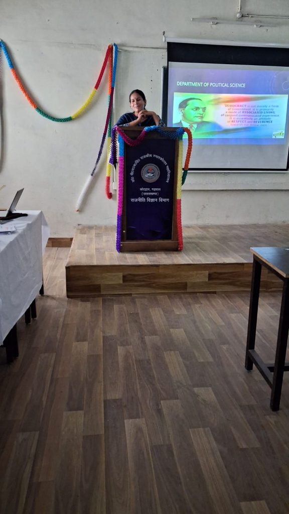 राजकीय स्नातकोत्तर महाविद्यालय में राजनीति विज्ञान क़े तत्त्वधान में विभागीय परिषदीय प्रतियोगिताओं भाषण निबंध पोस्टर तथा काव्य प्रतियोगिताओं का आयोजन किया गया कार्यक्रम का शुभारंभ राजनीति विज्ञान क़े विभागध्यक्ष डॉ अजीत सिंह डॉ ऐश्वर्या राणा डॉ कविता बिष्ट डॉ संत कुमार डॉ बिशन लाल शाह द्वारा संयुक्त रूप से मां सरस्वती एवं बाबा साहेब भीमराव अम्बेडकर क़े चित्र पर पुष्प अर्पित तथा दीप प्रज्ज्वलन क़े साथ किया गया कार्यक्रम में महाविद्यालय क़े प्राचार्य प्रोफेसर डीएस नेगी ने छात्र-छात्राओं को सामाजिक बदलाव और समानता क़े प्रतीक डॉ भीमराव अंबेडकर के विचारों से अवगत कराया विभाग प्रभारी डॉअजीत सिंह ने बाबा साहब के राजनितिक दर्शन तथा सामाजिक सिद्धांतों पर प्रकाश डाला डॉ ऐश्वर्या राणा ने बाबा साहेब के महिला सशक्तिकरण सामाजिक न्याय के बिंदुओं पर प्रकाश डाला इसी क्रम में डॉ संत कुमार ने कहा कि भीमराव अंबेडकर का पूरा जीवन देश के गरीबों और वंचितों के लिए समर्पित रहा डॉ कविता बिष्ट ने संविधान की प्रस्तावना पर अपने विचार रखें डॉ वर्षा सिंह ने सामाजिक परिवर्तन पर बाबा साहेब क़े योगदान को याद किया डॉ बिशन लाल शाह ने कहा कि यदि बाबा साहब दुनिया में नहीं आते तो सामाजिक न्याय दम तोड़ देता भाषण प्रतियोगिता में जगदीश ने प्रथम स्थान जिया परवीन ने द्वितीय स्थान दिव्या नेगी ने तृतीय स्थान प्राप्त किया पोस्टर प्रतियोगिता में शीतल पोखरियाल ने प्रथम स्थान निहारिका ने द्वितीय स्थान तथा संतोष ने तृतीय स्थान प्राप्त किया निबंध प्रतियोगिता में शिवम रावत प्रथम स्थान अश्वनी ममगाई द्वितीय स्थान अनुराग रावत तृतीय स्थान तथा काव्य वाचन में जगदीश प्रथम स्थान शीतल पोखरियाल ने द्वितीय स्थान प्राप्त किया कार्यक्रम क़े निर्णयक मंडल में डॉ वर्षा सिंह डॉ जगदीश चंद्र भट्ट डॉ सुरेखा घिल्डियाल थे कार्यक्रम का सफल संचालन डॉ बिशन लाल शाह ने किया कार्यक्रम में डॉ अजीत सिंह डॉ ऐश्वर्या राणा डॉ कविता बिष्ट डॉ वर्षा सिंह डॉ सुरेखा घिल्डियाल डॉ जगदीश चंद्र भट्ट अरविन्द दुदपुड़ी छात्र संघ अध्यक्ष विकास कुमार अनिकेत सहित छात्र-छात्राएं उपस्थित रहे