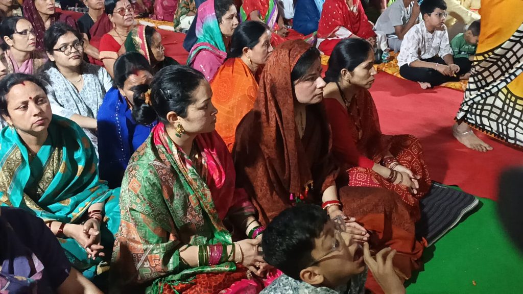 कार्यक्रम के दौरान श्रद्धालुओं ने व्यासपीठ पर विराजमान आचार्य हिमांशु गैरोला का माल्यार्पण कर स्वागत किया और कथा का श्रद्धापूर्वक रसपान किया। सभी ने सामूहिक आरती में भाग लेकर दिव्य आशीर्वाद प्राप्त किया।